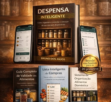 Você receberá um método completo para organizar, controlar e manter o estoque de alimentos da sua casa, evitando desperdícios e garantindo que sua família esteja sempre preparada.